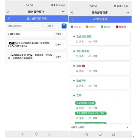 2、點(diǎn)擊事項(xiàng)名稱:展示當(dāng)前辦理事項(xiàng)和已完成事項(xiàng)的辦理進(jìn)度情況,只顯示事項(xiàng)名稱,進(jìn)度以顏色區(qū)別。